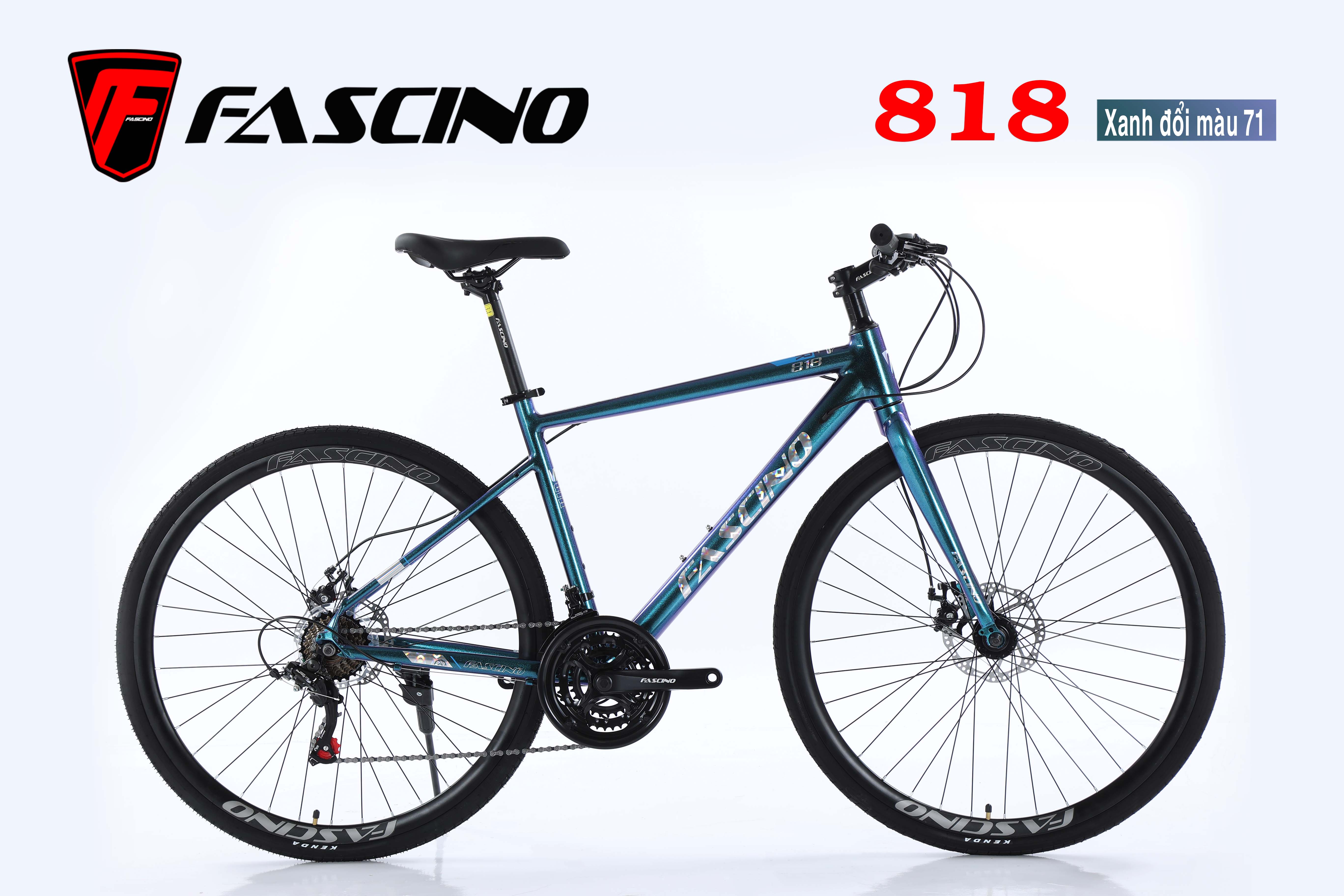 Xe đạp Touring FASCINO 818 là sản phẩm xe đạp Touring được ưa chuộng trên thị trường hiện nay nhờ kiểu dáng trang nhã, chất lượng và giá rất hợp lý. Xe FASCINO 818 với khung Nhôm không mối hàn sơn tĩnh điện tem phản quang, trang bị groupset SHIMANO 21 tốc độ, vành hợp kim nhôm 2 lớp, cổ lái hợp kim nhôm, phuộc đơ, phanh đĩa. Xe thanh thoát, di chuyển nhẹ nhàng, đảm bảo độ bền, hoạt động ổn định với mọi địa hình, tốc độ. Phù hợp cho mọi đối tượng để đi học, đi làm, đi thể dục, đi chơi.